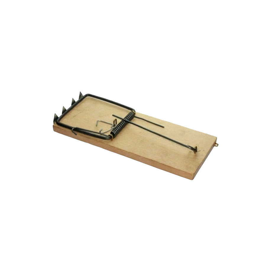 Łapka zatrzaskowa, drewniana na szczury. Pułapka zrobiona z twardego drzewa, wydzielone miejsce na położenie przynęty. Posiada mocną sprężynę oraz uchwyt do przymocowania pułapki.